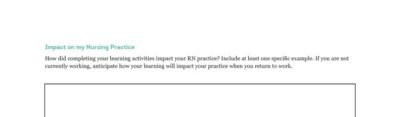 The second page of your learning plan is where you reflect on how your learning has influenced—or is expected to influence—your nursing practice. This is your Impact on Practice statement.