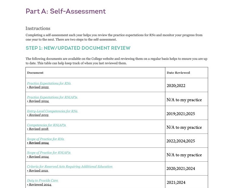 All registered nurses and nurse practitioners must complete a learning plan each year as part of the Continuing Competency Program (CCP). This is mandated under the Regulated Health Professions Act (RHPA).
